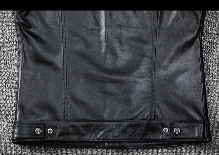 Chúng tôi hiểu rằng phong cách Biker hiện đại cần sự gọn gàng. Mẫu áo da gile này được thiết kế theo phom áo gile da kiểu ngắn (short body), vừa vặn chạm đến thắt lưng.