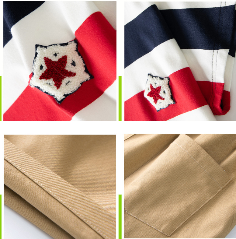 Chất liệu : áo vải thun cotton 100%, quần kaki mềm