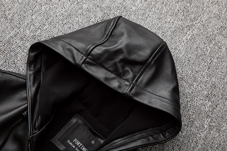 Điểm nhấn đắt giá nhất của bộ sưu tập lần này chính là chi tiết mũ trùm đầu (hoodie) được tích hợp khéo léo. Thiết kế áo khoác da nam trùm đầu phá vỡ quy chuẩn của một chiếc áo da truyền thống, mang đến hơi thở trẻ trung và năng động.
