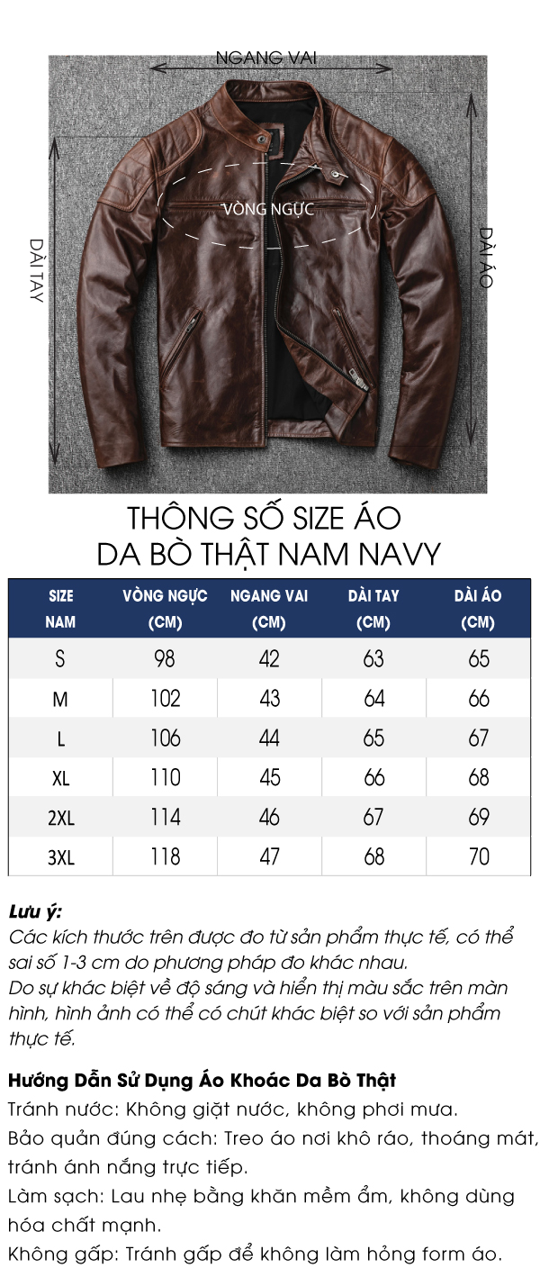 Chúng tôi hiểu rằng một chiếc áo da chỉ đẹp khi nó thực sự vừa vặn. Đó là lý do bộ sưu tập áo khoác da dê thật của chúng tôi có dải size đầy đủ từ S-3XL, phù hợp với mọi vóc dáng của người Việt Nam, từ thân hình cân đối đến những quý ông cao lớn.