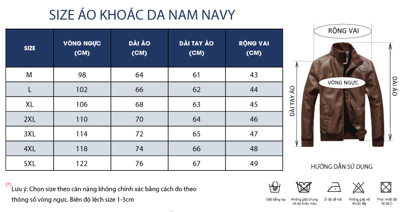 Thông số size Áo khoác da nam béo Áo khoác da nam Áo khoác da nam big size