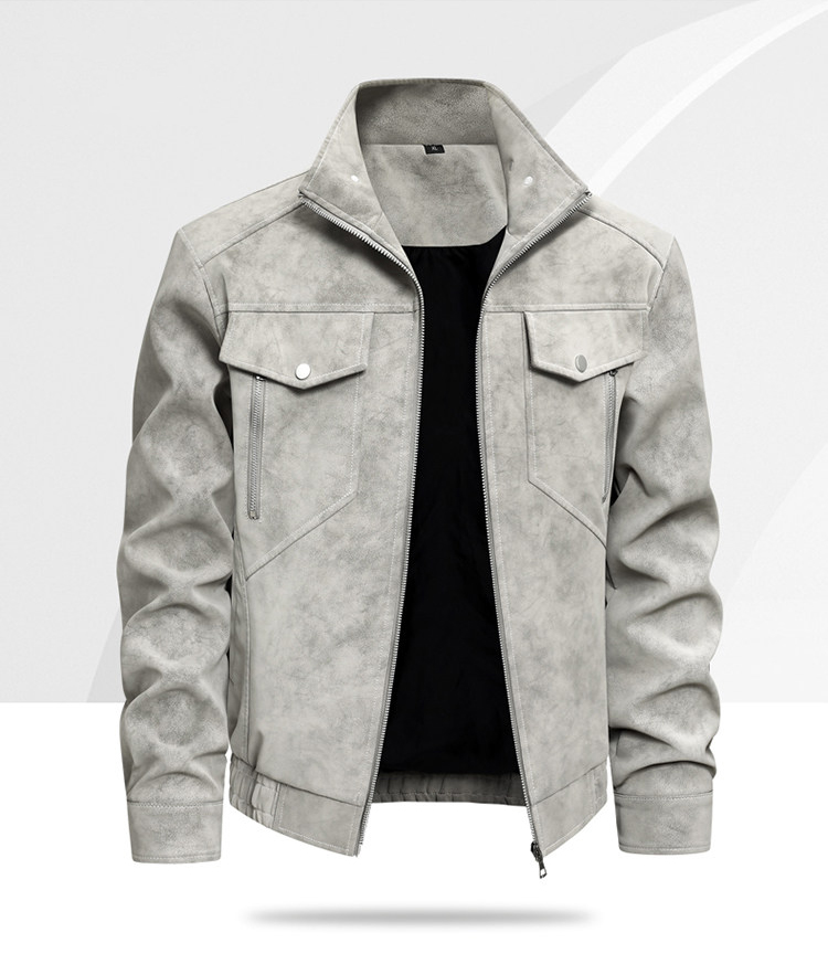 Nếu bạn muốn vẻ ngoài trông sáng sủa và năng động hơn, chiếc áo da nam màu kaki (xám nhạt/kaki) là sự lựa chọn hoàn hảo. Tông màu này cực kỳ tôn da và mang lại cảm giác mới mẻ, hiện đại, rất phù hợp cho những buổi hẹn hò hoặc dạo phố cuối tuần.