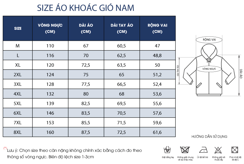 Thông số sizeÁo khoác dù big size nam Áo khoác dù nam size to Áo khoác dù nam ngoại cỡ