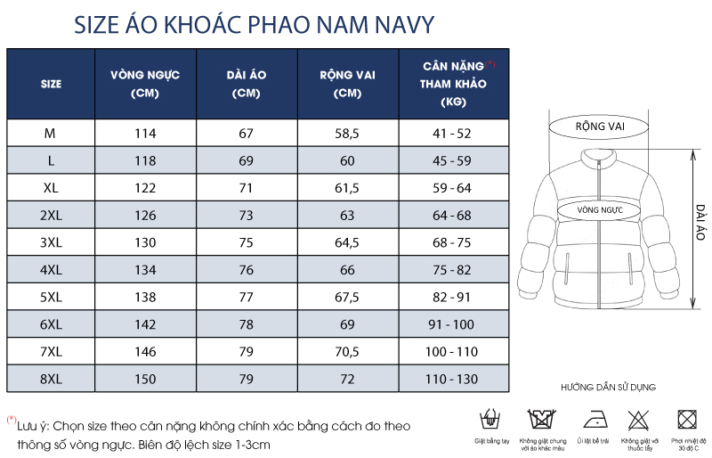Sản phẩm có đủ size từ M–8XL, 41kg–130kg. Navy giao hàng cả nước