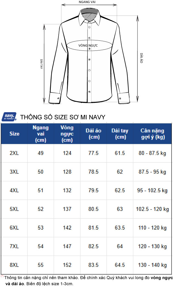 Áo sơ mi Navy BS3278 được thiết kế với kiểu dáng tay dài, dễ dàng kết hợp với quần tây, quần kaki hay quần jeans, tạo nên nhiều phong cách khác nhau. Với bảng size rộng từ 2XL đến 8XL, sản phẩm đáp ứng nhu cầu của nhiều vóc dáng, mang đến sự vừa vặn hoàn hảo.