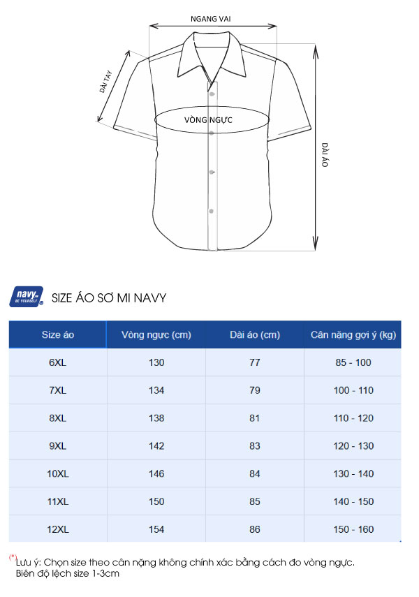 Điểm nhấn đặc biệt của mẫu áo sơ mi nam big size này chính là dải size cực đại, từ 6XL đến 12XL. Navy hiểu rằng việc tìm kiếm trang phục đúng kích cỡ, đặc biệt là áo sơ mi, là một thách thức đối với những người có thân hình ngoại cỡ. Vì vậy, BS3257 được thiết kế với form dáng rộng rãi, chuẩn size lớn, đảm bảo sự thoải mái tối đa khi vận động mà không gây cảm giác gò bó, khó chịu.