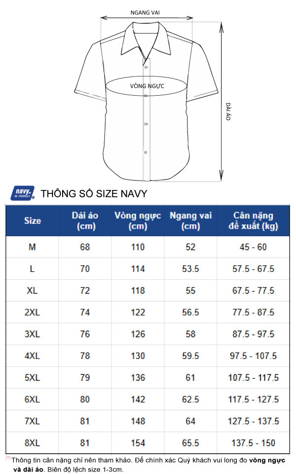 Sản phẩm có đủ size từ M đến 8XL, bao gồm cả những size lớn, phục vụ nhu cầu đa dạng và đảm bảo rằng mọi quý ông đều tìm được chiếc áo vừa vặn nhất. Là sản phẩm từ thương hiệu Navy uy tín, chiếc áo sơ mi nam Navy này là sự kết hợp hoàn hảo giữa chất lượng, sự tiện lợi và phong cách.