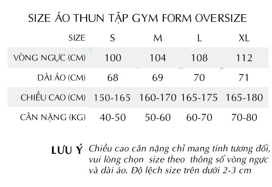 S (vòng ngực 100cm) M (vòng ngực 104cm) L (vòng ngực 108cm) XL (vòng ngực 112cm)