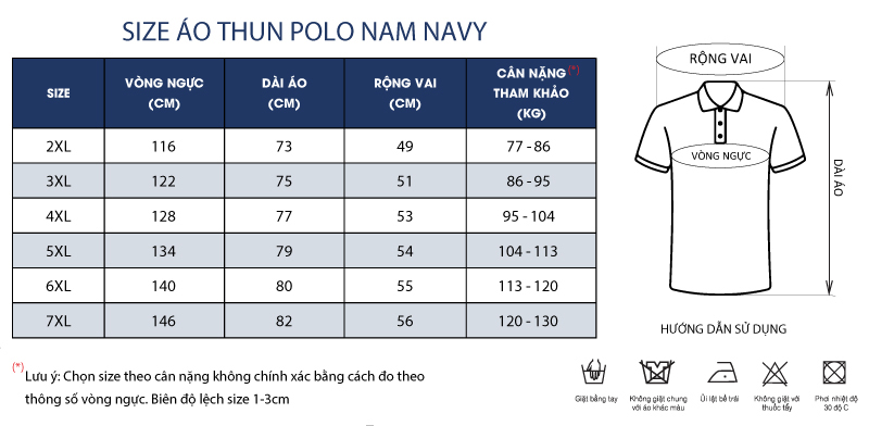 Áo polo Navy được sản xuất từ chất liệu thun cao cấp ít nhăn nhàu và cực mịn mát, thoải mái cho người sử dụng, sản phẩm có đủ size từ 2XL đến 7XL, giao hàng cả nước.