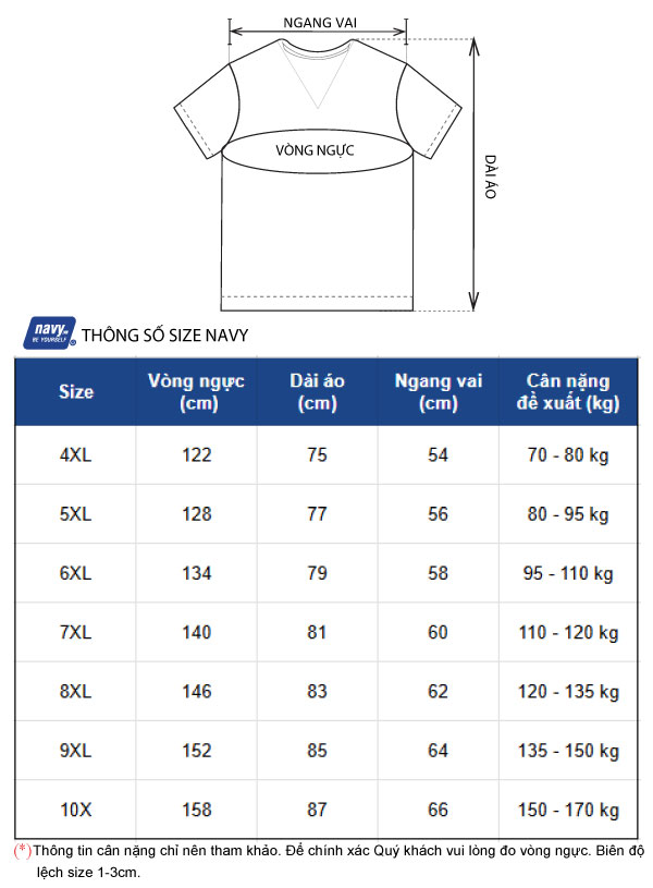 Với bảng size rộng từ 4XL đến 10XL, áo thun nam big size BS3356 đảm bảo phục vụ nhu cầu đa dạng của khách hàng, mang đến sự vừa vặn tối ưu cho những người cần kích thước lớn. Thương hiệu Navy luôn tập trung vào thời trang nam big size, cam kết mang đến sản phẩm chất lượng cao từ chất liệu đến đường may.