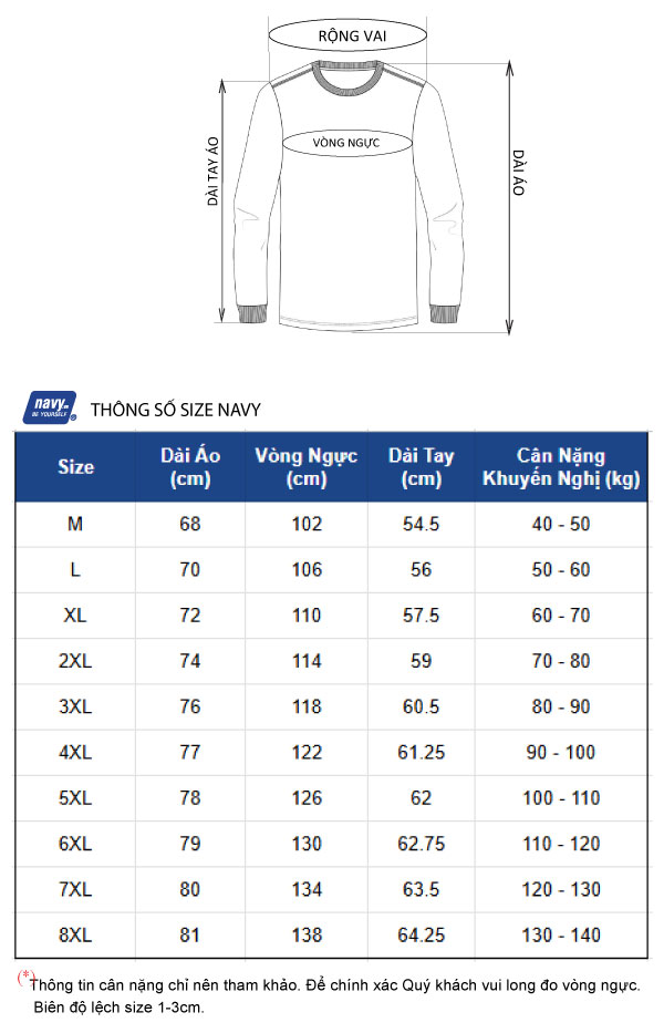 Tìm kiếm chiếc áo vừa vặn, thoải mái và chất lượng? Áo Thun Tay Dài Navy BS3299 là lựa chọn hoàn hảo cho bạn. Sản phẩm đặc biệt dành cho phái mạnh với dải big size cực kỳ đa dạng từ M đến 8XL, đáp ứng mọi nhu cầu về kích cỡ.