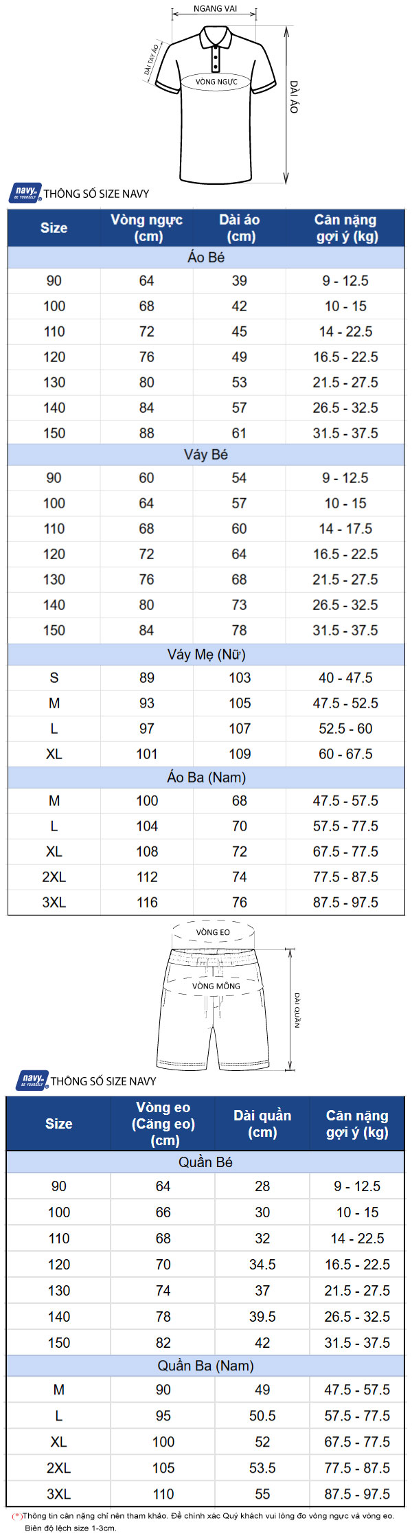 Thông số size: