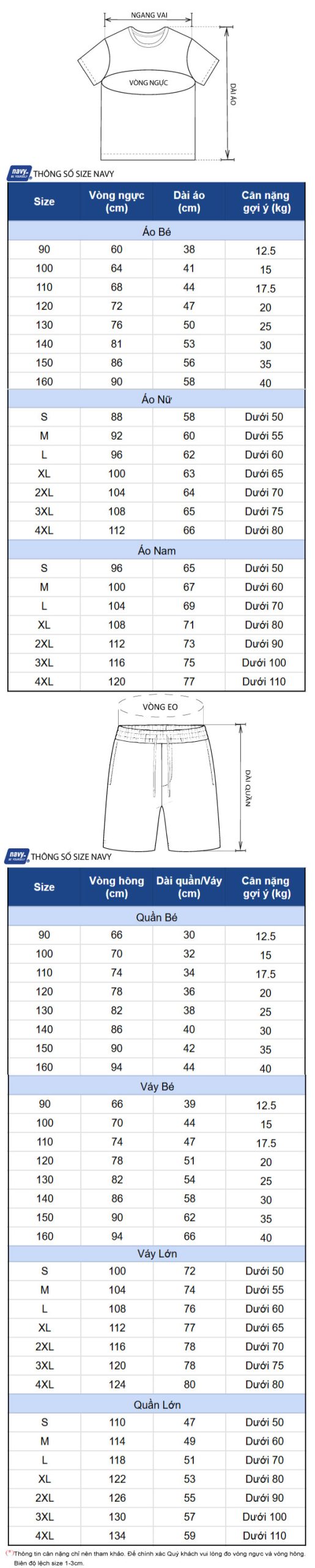 Thông số size: