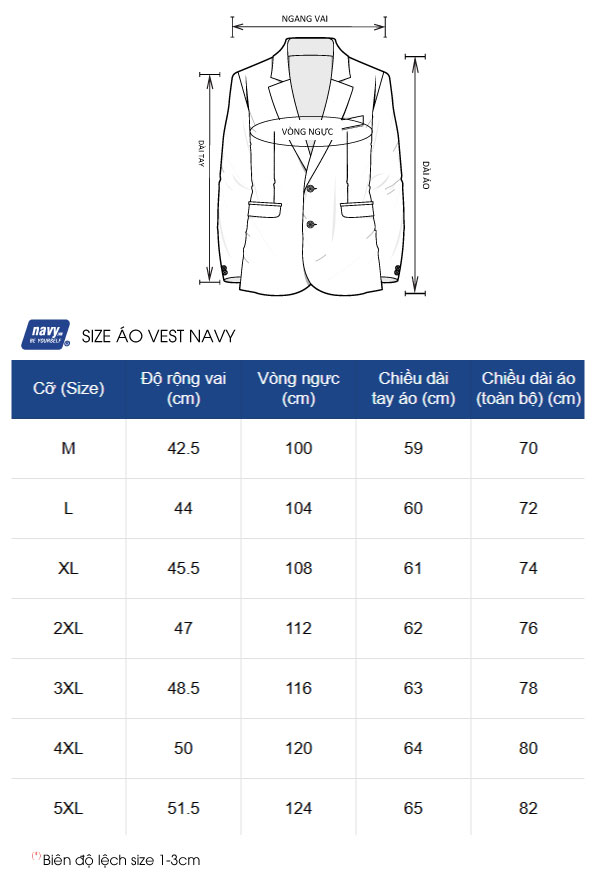 Hiểu được sự đa dạng về vóc dáng của phái mạnh, áo vest công sở Navy BS3263 được sản xuất với đầy đủ các size từ M đến 5XL. Dù bạn sở hữu vóc dáng cân đối hay hơi đậm người, bạn đều có thể dễ dàng lựa chọn được chiếc áo vest vừa vặn, tôn lên những đường nét mạnh mẽ và che đi những khuyết điểm một cách tinh tế.