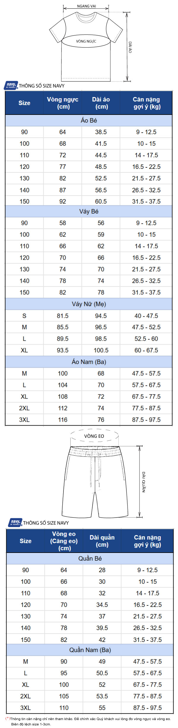 Thông số size: