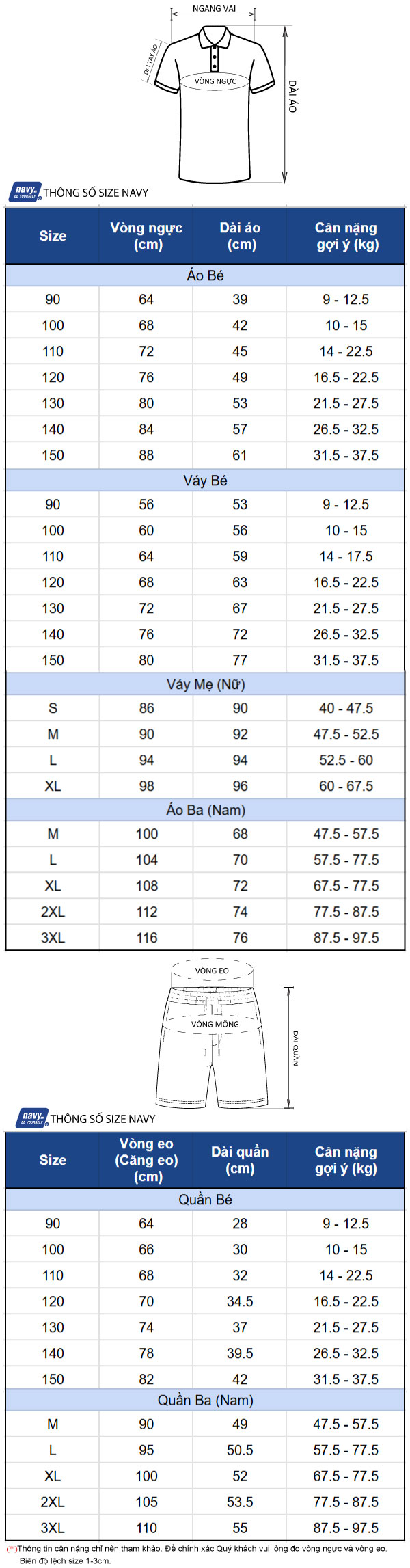 Thông số size: