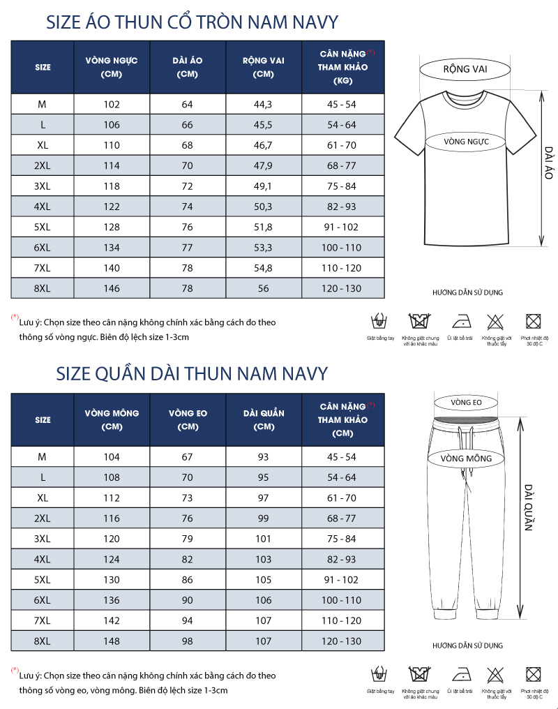 Bộ quần áo big size nam của Navy có đủ size từ M đến 8XL, bạn không còn bân khuâng về việc lựa chọn size số. Sản phẩm được giao hàng trên toàn quốc