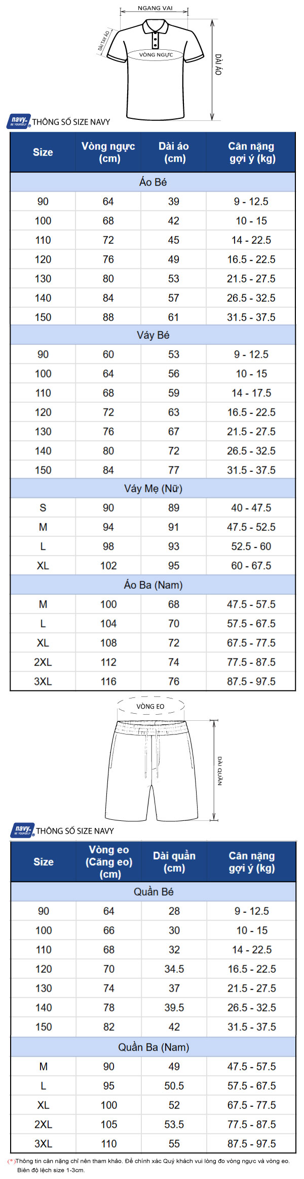 Thông số size: