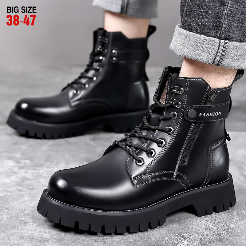 Giày nam cở lớn Giày boot đế dày cổ cao Giày công sở hợp thời trang Giày da thật