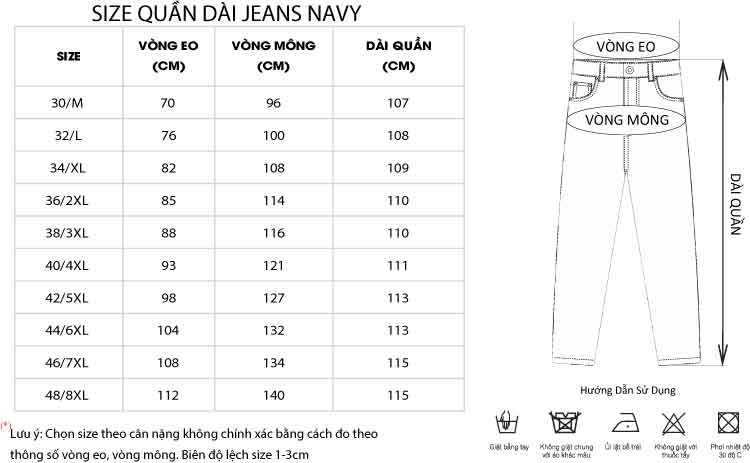 Quần bò big size nam Navy là một sản phẩm thời trang dành cho những người có vóc dáng lớn. Chất liệu jean dày co giãn cao cấp giúp quần bò này có độ bền cao, thoải mái khi mặc và dễ dàng phối đồ. Quần bò big size nam Navy có nhiều kiểu dáng, màu sắc và size khác nhau để bạn lựa chọn theo sở thích và phong cách của mình. Quần bò big size nam là một lựa chọn hoàn hảo cho những người muốn thể hiện sự tự tin, nam tính và cá tính.