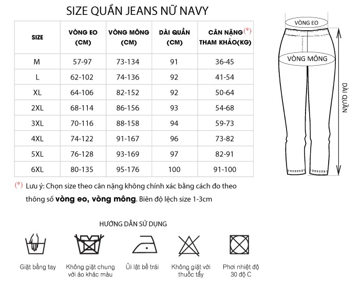 Quần bò big size nữ Từ 36kg-100kg Navy BSN471