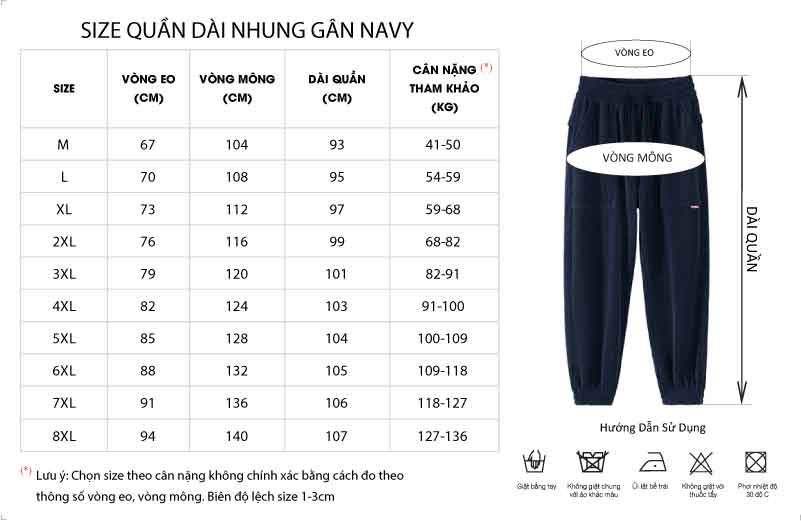 Quần dài nhung gân nam big size Navy Sản phẩm có đủ size từ M đến 8XL được sản xuất bởi công ty thời trang Navy, công ty chuyên thời trang big size có hơn 10 năm kinh nghiệm. Sản phẩm được giao hàng cả nước thanh toán khi nhận hàng rất tiện lợi