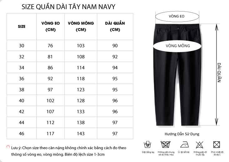 Quần dài tây size to nam Navy với chất vải tây chuyên dụng co giãn mỏng mát, sản phẩm hiện có đủ size từ 30 đến 46, là sản phẩm thời trang cao cấp dành cho các quý ông. Quần có thiết kế đơn giản nhưng sang trọng, phù hợp với nhiều phong cách và dịp khác nhau. Quần được may từ chất liệu vải tây chuyên dụng, có độ bền cao và thoáng mát. Quần còn có tính năng co giãn nhẹ, giúp bạn thoải mái khi vận động. Quần có nhiều size để bạn lựa chọn đủ size từ 30 đến 46, không lo bị rộng hay chật. Quần dài tây size to nam Navy vải tây chuyên dụng co giãn nhẹ là lựa chọn hoàn hảo cho bạn khi muốn thể hiện sự lịch lãm và tự tin.