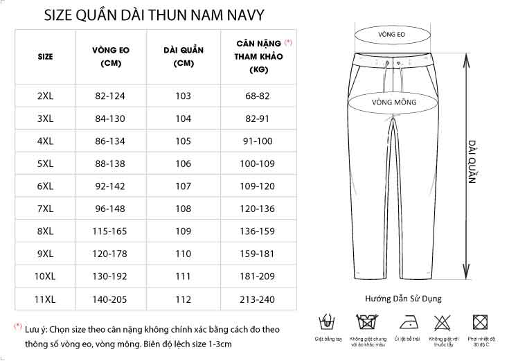 Quần dài thun nam big size Navy Sản phẩm có đủ size từ 2XL đến 11XL được sản xuất bởi công ty thời trang Navy, công ty chuyên thời trang big size có hơn 10 năm kinh nghiệm. Sản phẩm được giao hàng cả nước thanh toán khi nhận hàng rất tiện lợi
