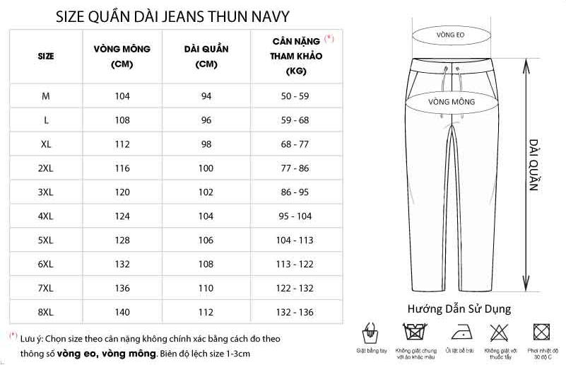 Quần jeans big size nam Navy là một trong những sản phẩm thời trang được nhiều người ưa chuộng hiện nay. Quần Jeans thun co giãn big size này có thiết kế đơn giản nhưng không kém phần sang trọng và lịch sự. Quần jeans cao cấp có chất liệu bền đẹp, co giãn tốt, thấm hút mồ hôi, mang lại cảm giác thoải mái cho người mặc. Quần bò big size cao cấp phù hợp với nhiều dáng người, đặc biệt là những người có vóc dáng to lớn. Quần jeans big size nam navy có thể kết hợp với nhiều loại trang phục khác nhau, từ áo thun, áo sơ mi, áo khoác, đến giày dép, phụ kiện. Quần bò big size cao cấp là một lựa chọn hoàn hảo cho bạn khi muốn tạo nên một phong cách thời trang chuyên nghiệp và hiện đại.