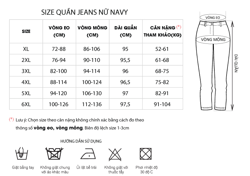 Nếu bạn đang tìm kiếm một chiếc quần jeans big size nữ phù hợp với cơ thể của mình, bạn không nên bỏ qua sản phẩm này. Đây là quần bò big size nữ đủ size từ 45kg-150kg của Navy với chất liệu jeans co giãn thoải mái, không gây cảm giác bí bách hay khó chịu khi mặc. Quần jeans big size nữ có thiết kế đơn giản nhưng không kém phần thời trang, với gam màu trung tính dễ dàng phối hợp với nhiều loại áo khác nhau. Quần bò big size nữ cũng có độ bền cao, không bai nhão hay phai màu sau nhiều lần giặt. Bạn có thể mặc chiếc quần này để đi làm, đi chơi hay đi du lịch mà vẫn tự tin và thoải mái. Hãy đặt hàng ngay hôm nay để sở hữu chiếc quần jeans nữ ưng ý nhất!