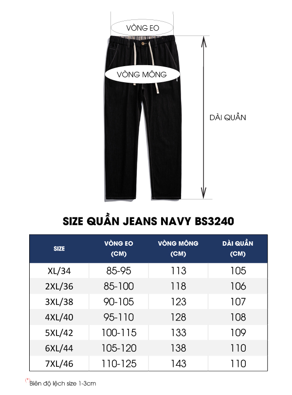 Quần Jeans Nam Lưng Thun Navy BS3240 Mềm Dày Vừa Co Giãn Mạnh Size Từ XL Đến 7XL Thời Trang Phong Cách!