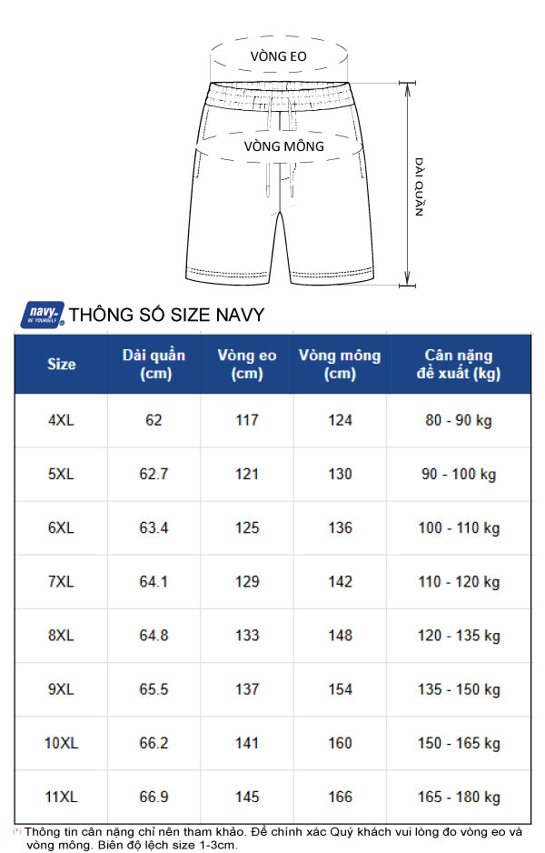 Với kiểu dáng thể thao hiện đại, quần short Navy BS3344 dễ dàng phối hợp cùng áo phông, áo ba lỗ, tạo nên phong cách trẻ trung, khỏe khoắn. Sản phẩm có đủ kích cỡ lớn từ 4XL đến 11XL, đảm bảo mọi quý ông big size đều có thể tìm được size phù hợp với mình.