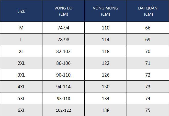 M (Quần shorts) L (Quần shorts) XL (Quần shorts) 2XL (Quần shorts) 3XL (Quần shorts) 4XL (Quần shorts) 5XL (Quần shorts) 6XL (Quần shorts)
