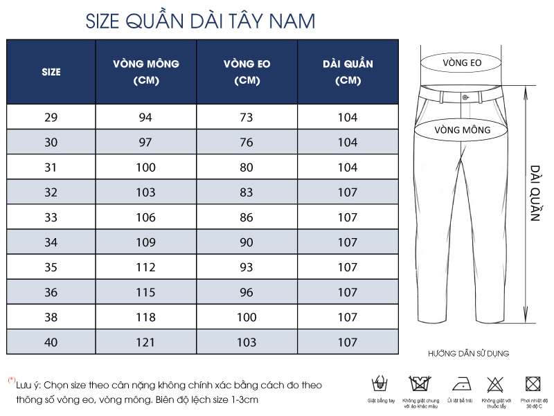 29 (VÒNG MÔNG 94CM) 30 (VÒNG MÔNG 97CM) 31 (VÒNG MÔNG 100CM) 32 (VÒNG MÔNG 103CM) 33 (VÒNG MÔNG 106CM) 34 (VÒNG MÔNG 109CM) 35 (VÒNG MÔNG 112CM) 36 (VÒNG MÔNG 115CM) 38 (VÒNG MÔNG 118CM) 40 (VÒNG MÔNG 121CM)