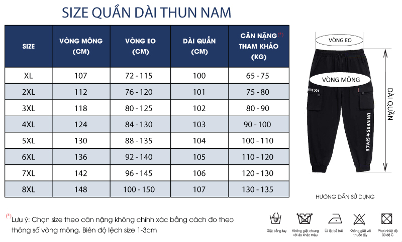 XL (VÒNG MÔNG 107CM) 2XL (VÒNG MÔNG 112CM) 3XL (VÒNG MÔNG 118CM) 4XL (VÒNG MÔNG 124CM) 5XL (VÒNG MÔNG 130CM) 6XL (VÒNG MÔNG 136CM) 7XL (VÒNG MÔNG 142CM) 8XL (VÒNG MÔNG 148CM)