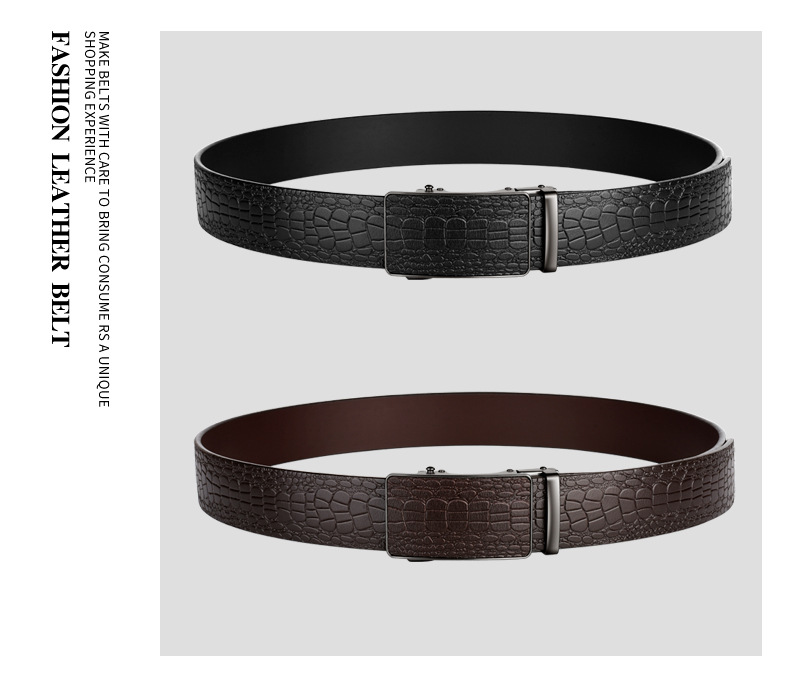 Thắt Lưng Da Bò Dập Vân Cá Sấu Khóa Tự Động (Bản 3.5cm) – Nâng Tầm Đẳng Cấp Quý Ông